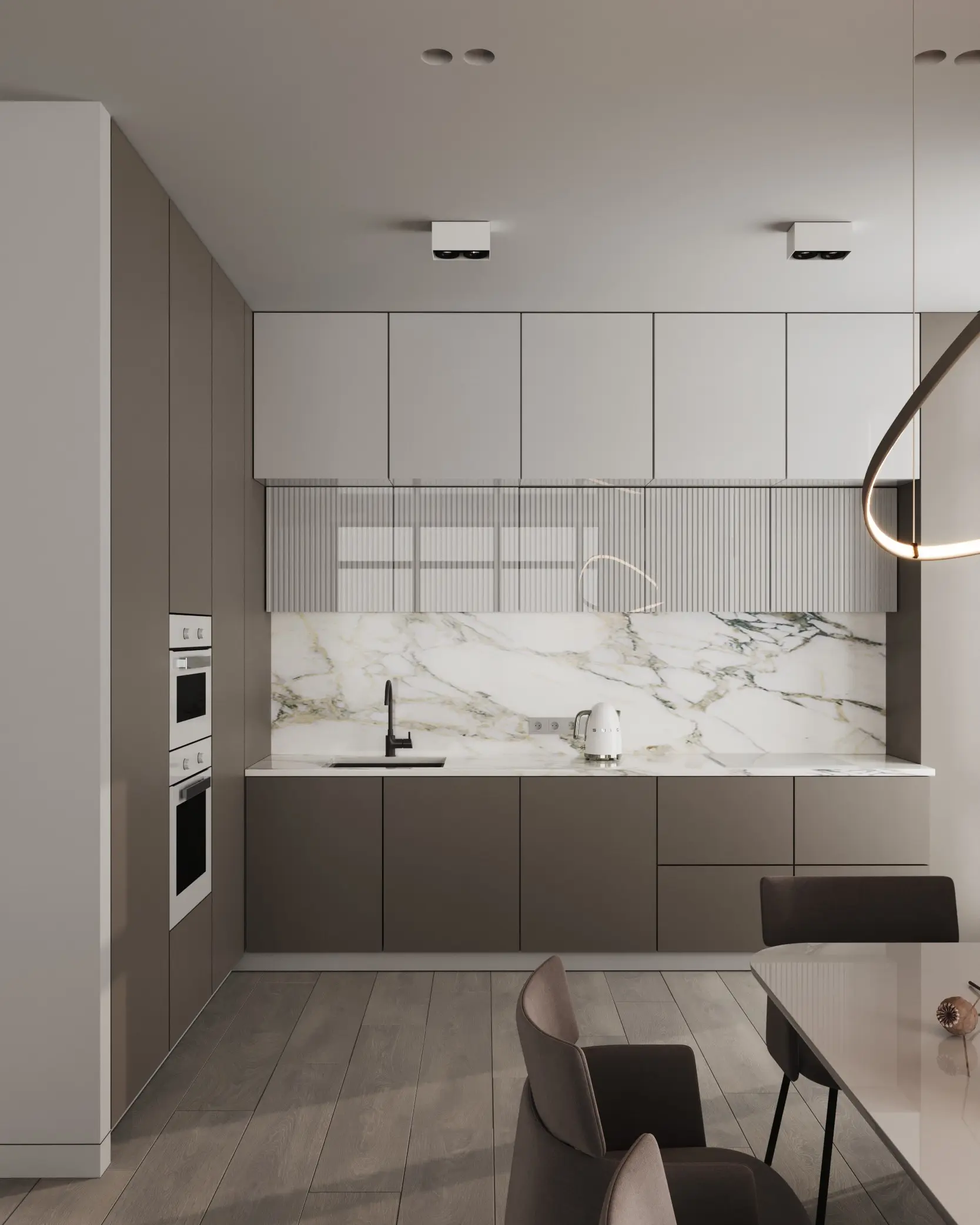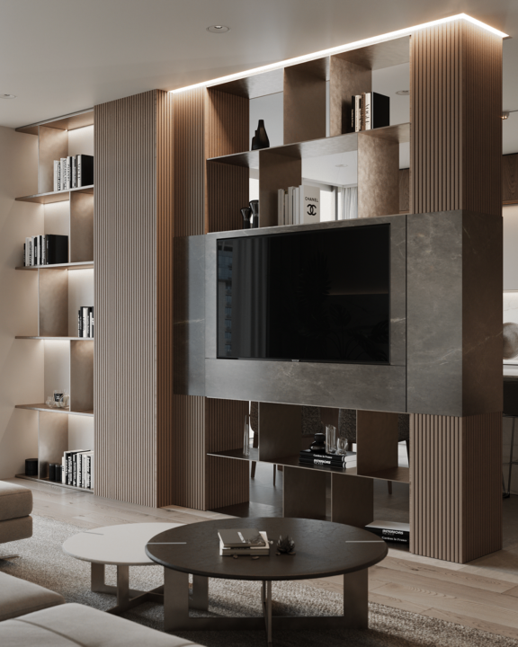 PROJECT DEVELOPMENT AND PRODUCTION OF KITCHEN, CUSTOM FURNITURE. SELECTION OF FURNITURE, MATERIALS AND ART OBJECTS IN THE INTERIOR